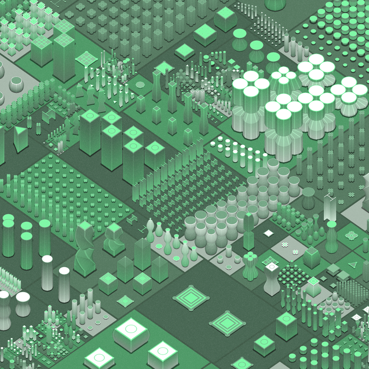 From the canvas's silent ground, the pieces unfurl, sprouting through the layers of coded parameters.