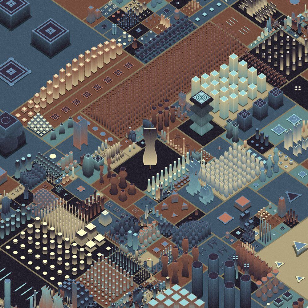 It unravels in the style of isometric illusions, each twist and turn carving out a depth, a dimension, luring the onlooker into a labyrinth of intricate details, of abstract forms blooming from the ground beneath.